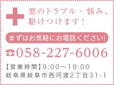 岐阜市・本巣市・瑞穂市・岐南町・各務原市のアルミサッシ・窓のお悩みやトラブルは、ギフマドへ! 岐阜県岐阜市西河渡2丁目31-1 ☎ 058-227-6006